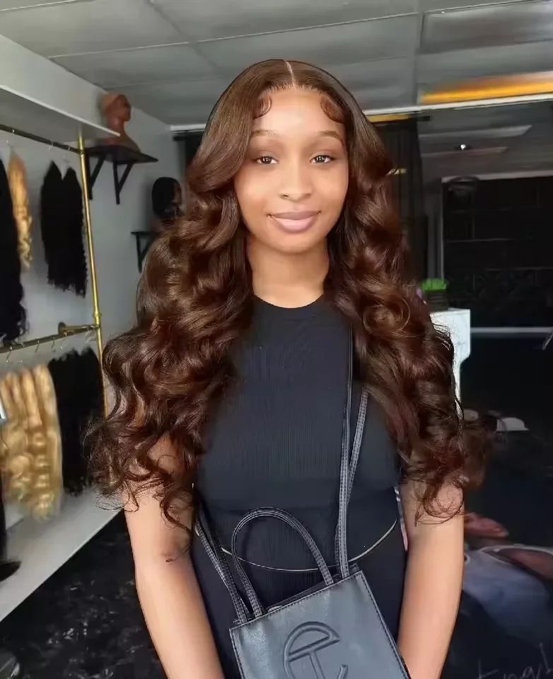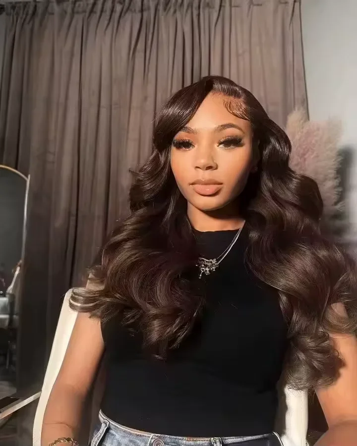 13x4 Chocolate Brown Glueless Wigs Body Wave